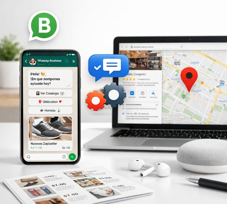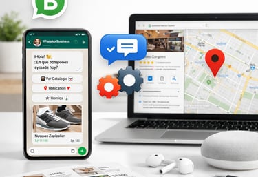 Desde respuestas inteligentes, catálogos y flujos de atención, hasta una presencia optimizada en Google Maps que te ayude a aparecer, destacar y atraer más clientes locales.
